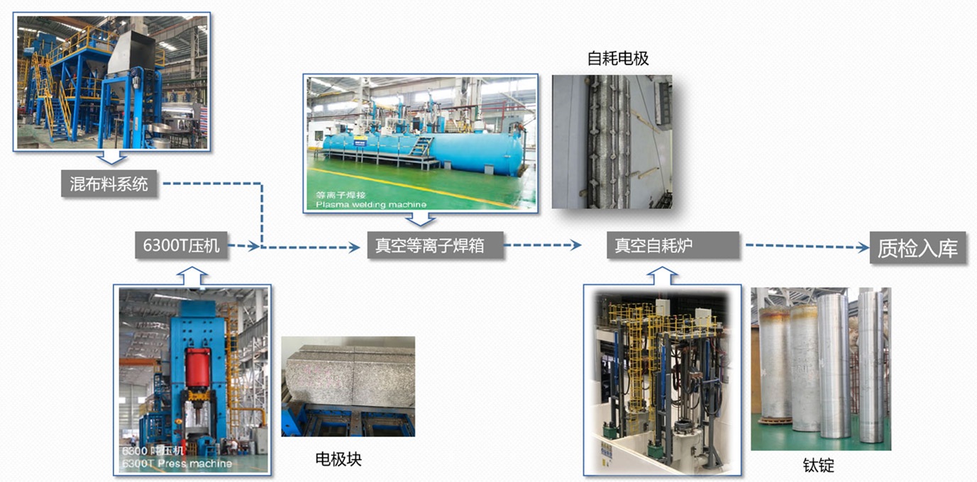 1. 开展装备建设和工艺探索探索,,,提高钛及钛合金铸锭纯净度和均匀性;